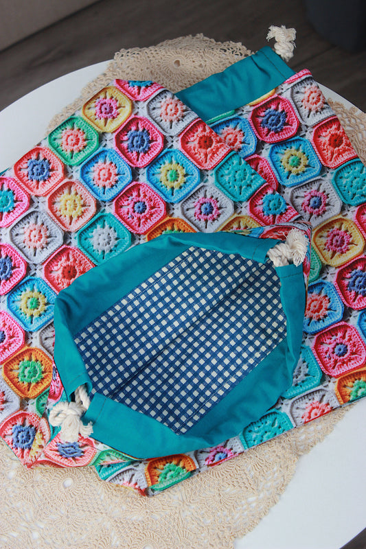 Vibrant 3D Look Granny Squares Drawstring Project Bag