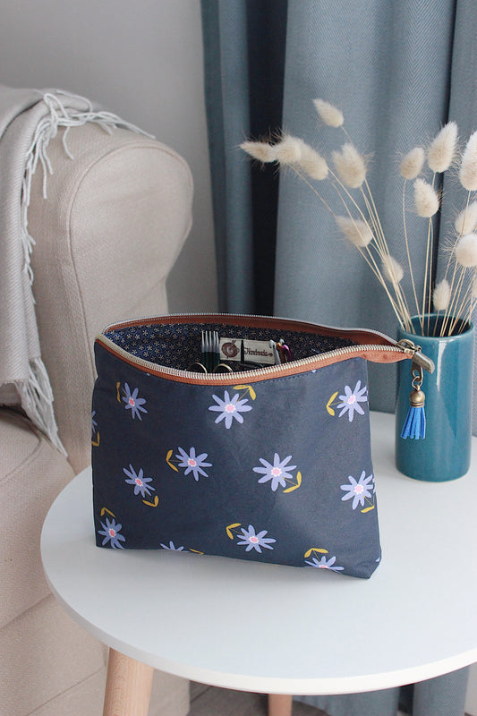 Yellow & Grey Knitting Project Bag with Built-in DPN Holder & Matching Squeeze Purse
