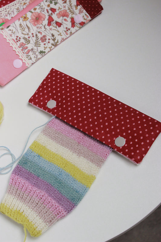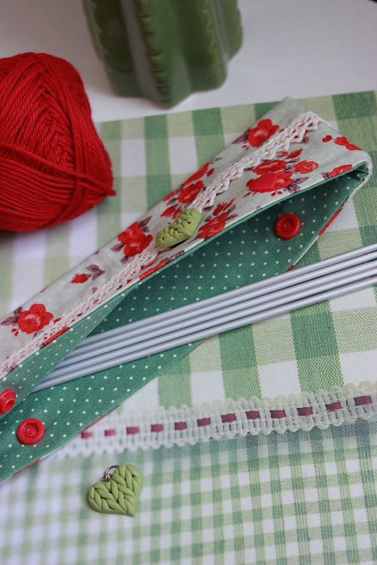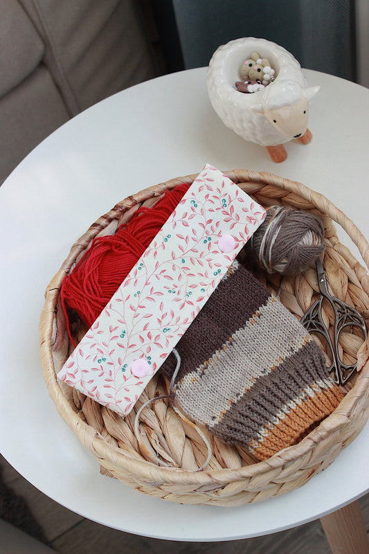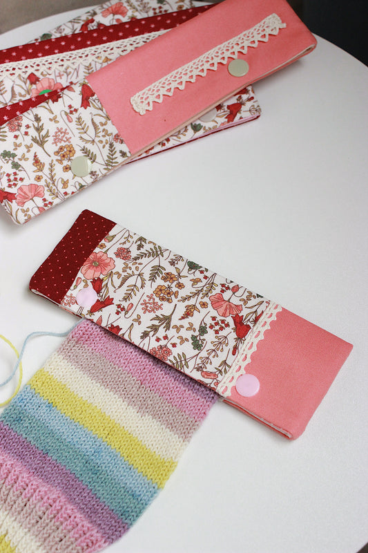 Burgundy Floral DPN Holder – Handmade Knitting Needle Case with Snap Closure