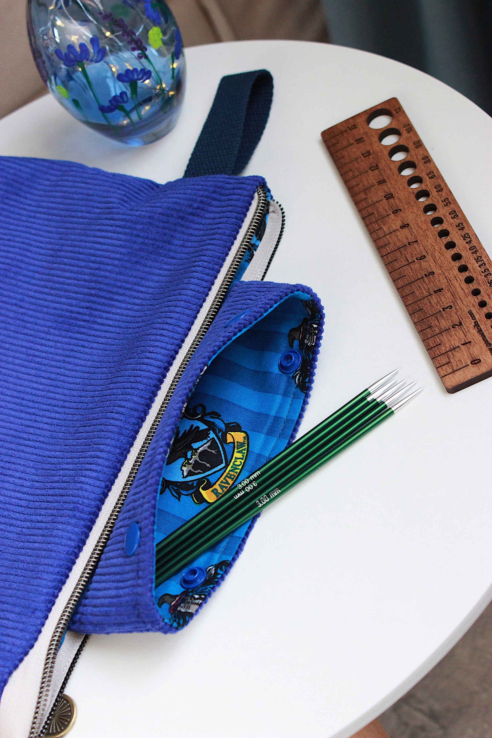 Ravenclaw-Inspired Corduroy Knitting Project Bag with Built-in Needle Holder